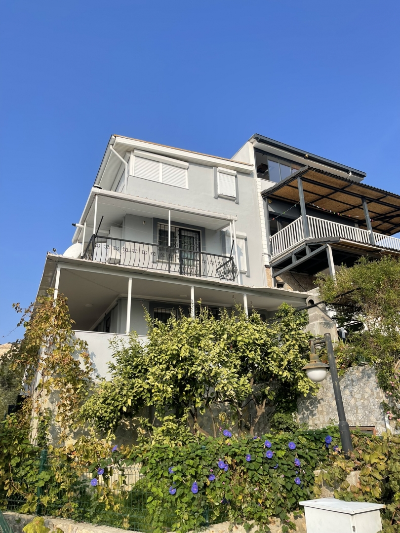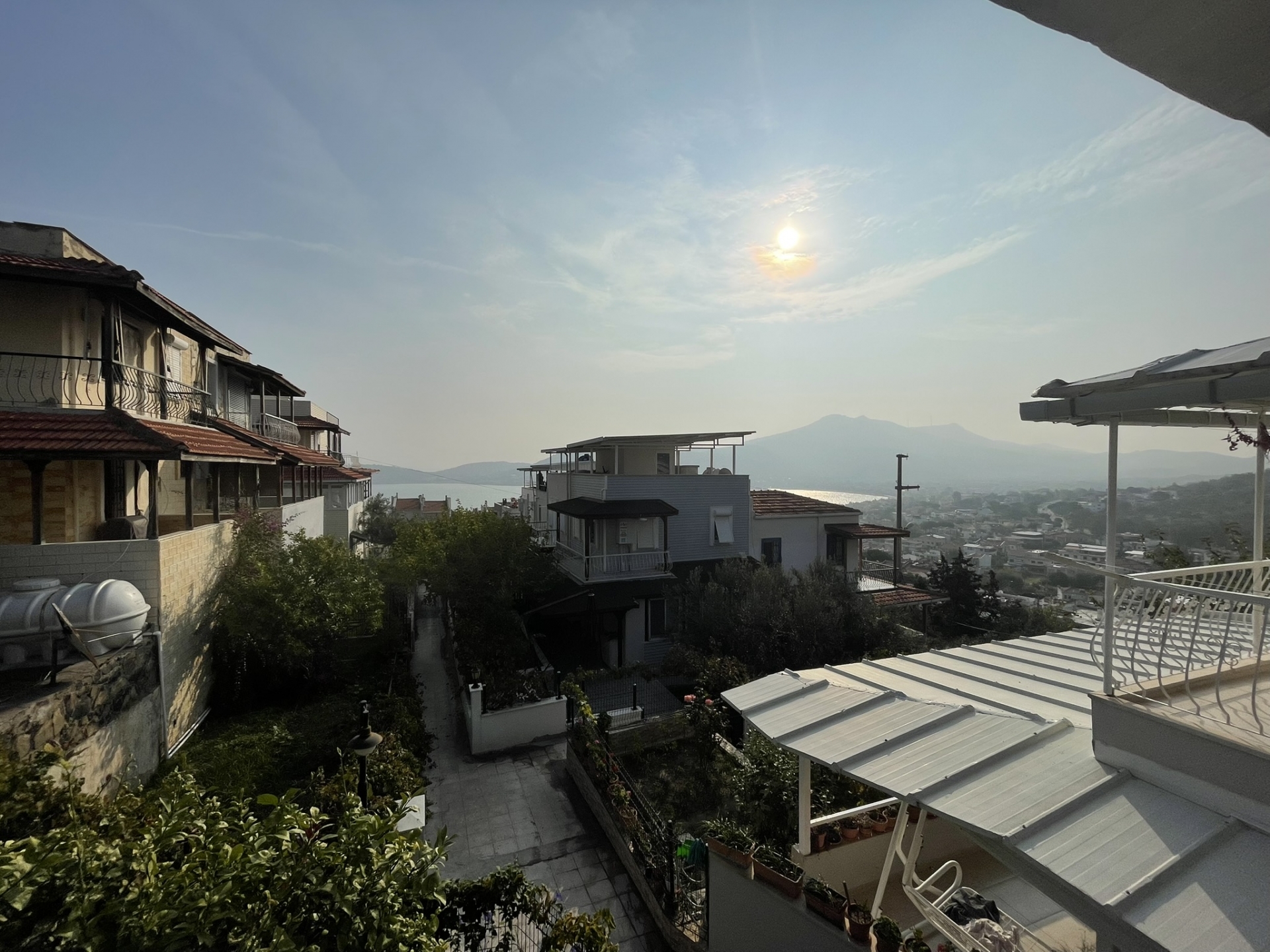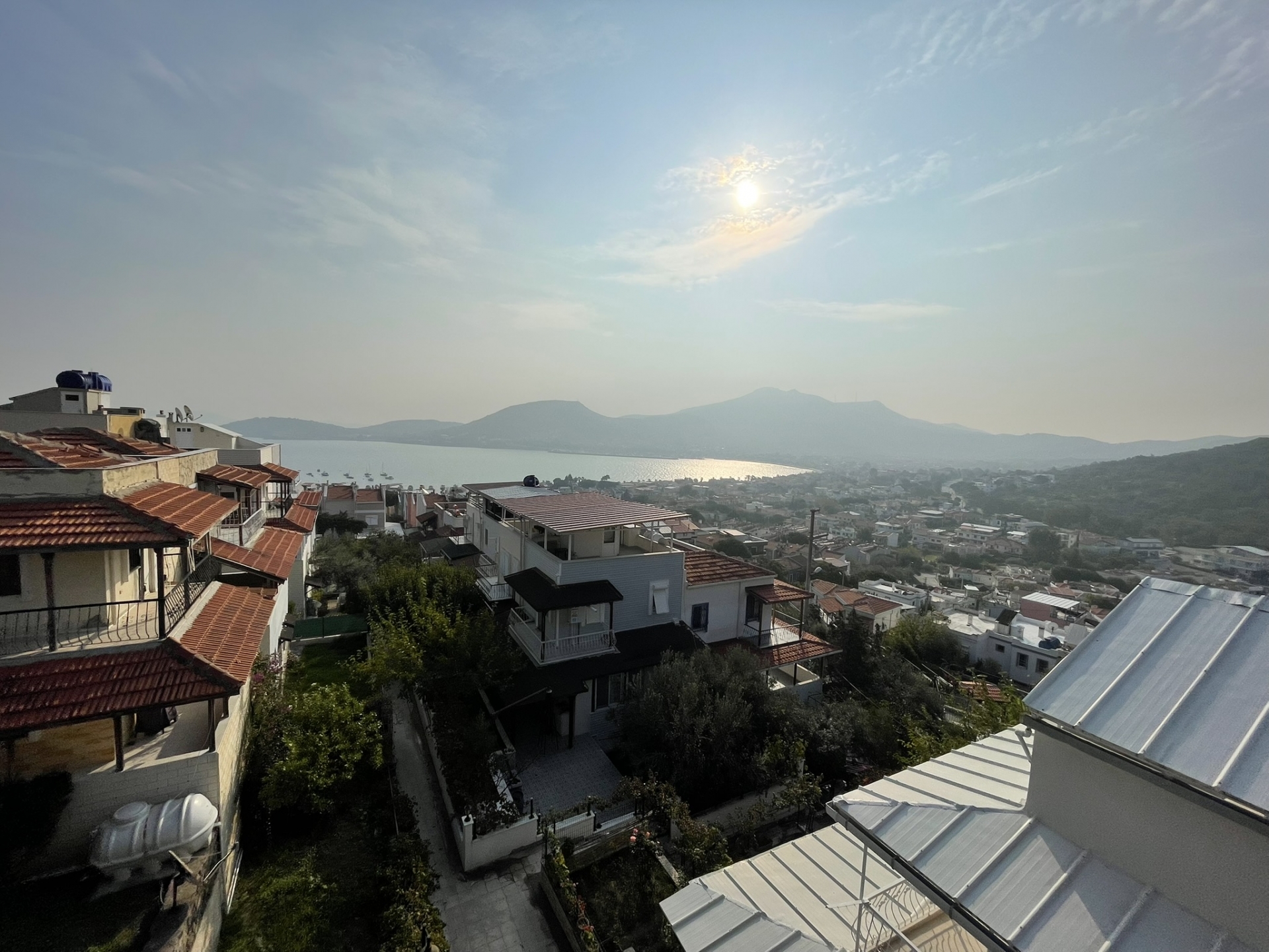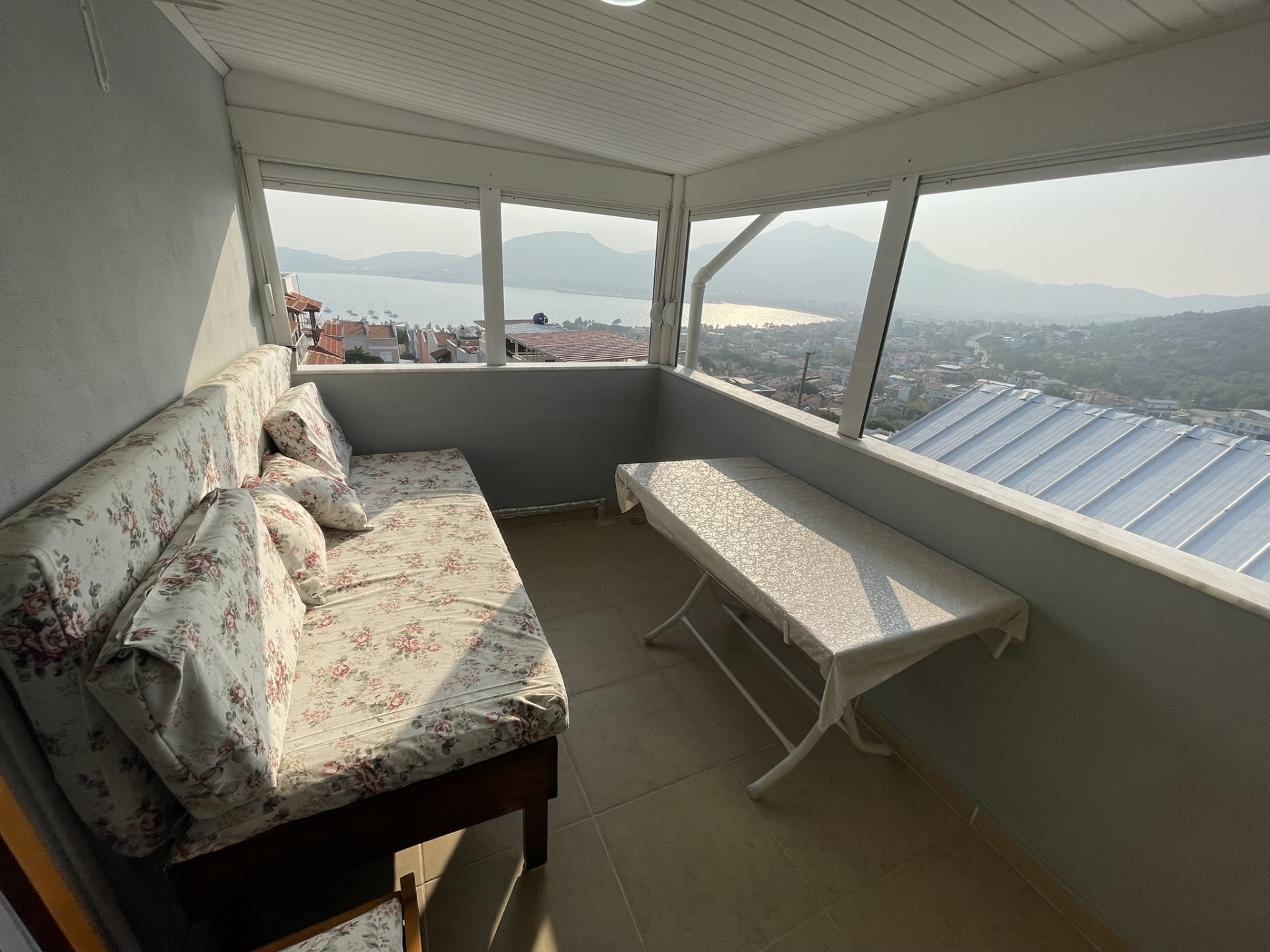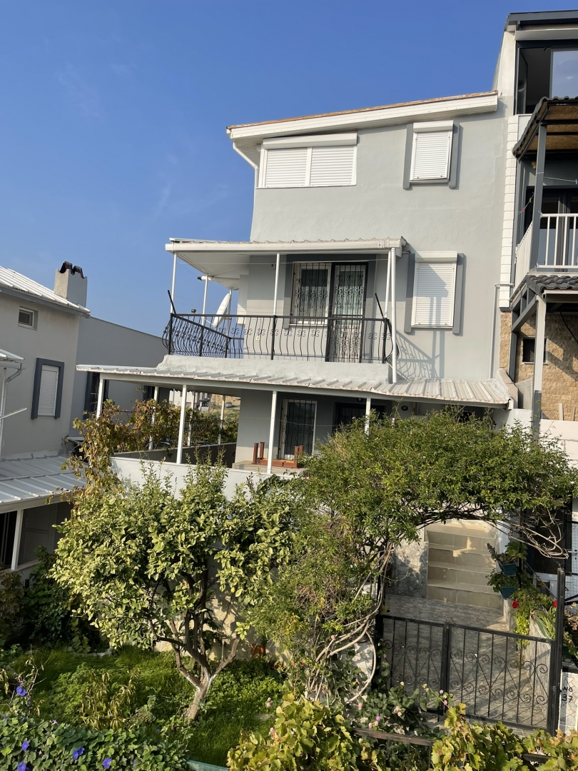 Köşe konumlu, deniz manzaralı, geniş verandası ve müstakil bahçesi ile barbekü alanı bulunan evimiz; açık mutfaklı salondan, bir adet WC'den, üç yatak odasından ve iki adet WC/banyodan oluşmaktadır. Tamamıyla deniz manzaralı olan evimiz, Yeni Foça manzarasına hakim, açılır-kapanır panjurlu bir teras alanı mevcuttur.