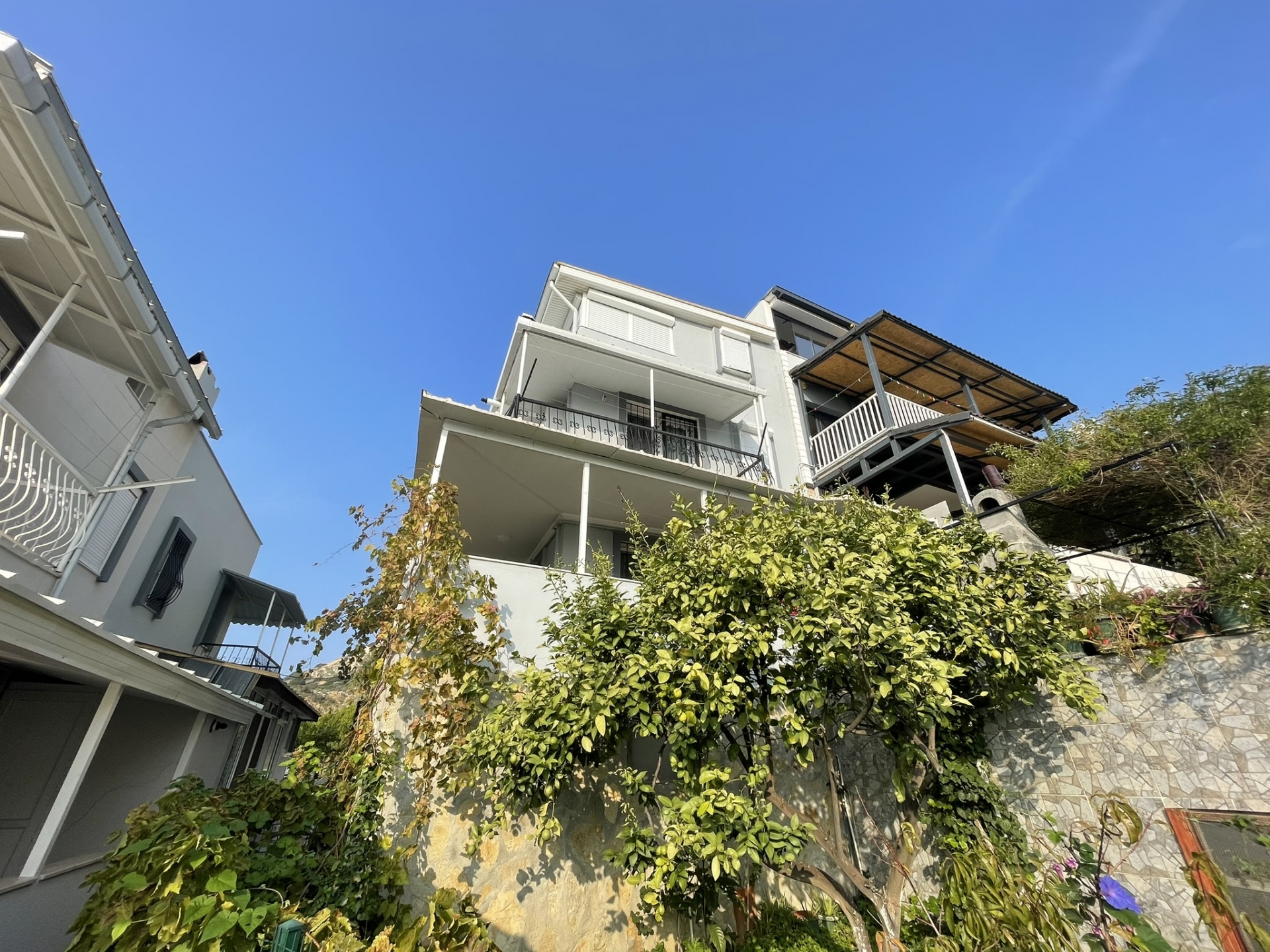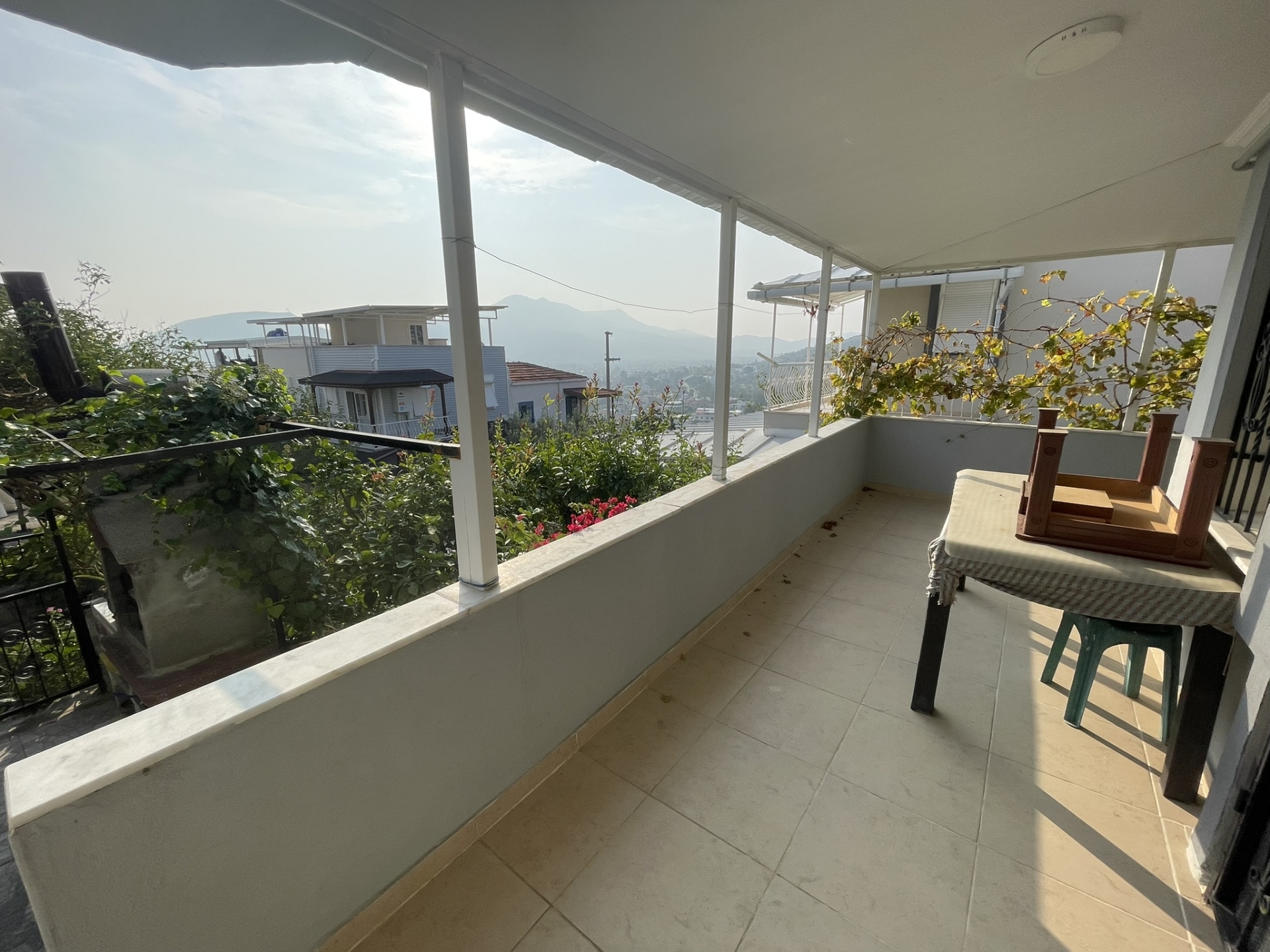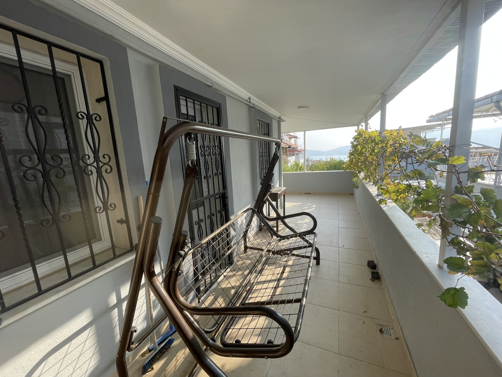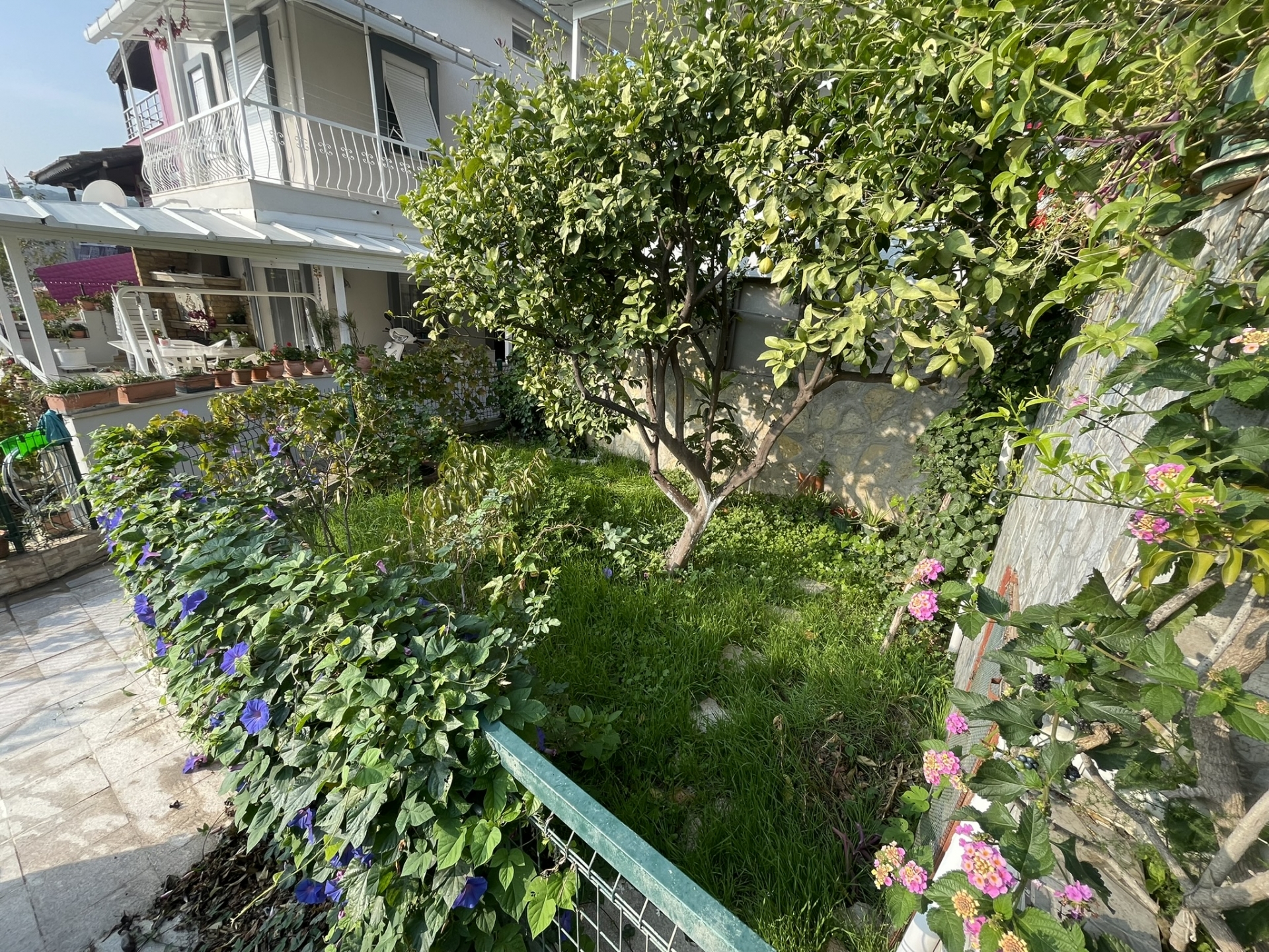 Köşe konumlu, deniz manzaralı, geniş verandası ve müstakil bahçesi ile barbekü alanı bulunan evimiz; açık mutfaklı salondan, bir adet WC'den, üç yatak odasından ve iki adet WC/banyodan oluşmaktadır. Tamamıyla deniz manzaralı olan evimiz, Yeni Foça manzarasına hakim, açılır-kapanır panjurlu bir teras alanı mevcuttur.