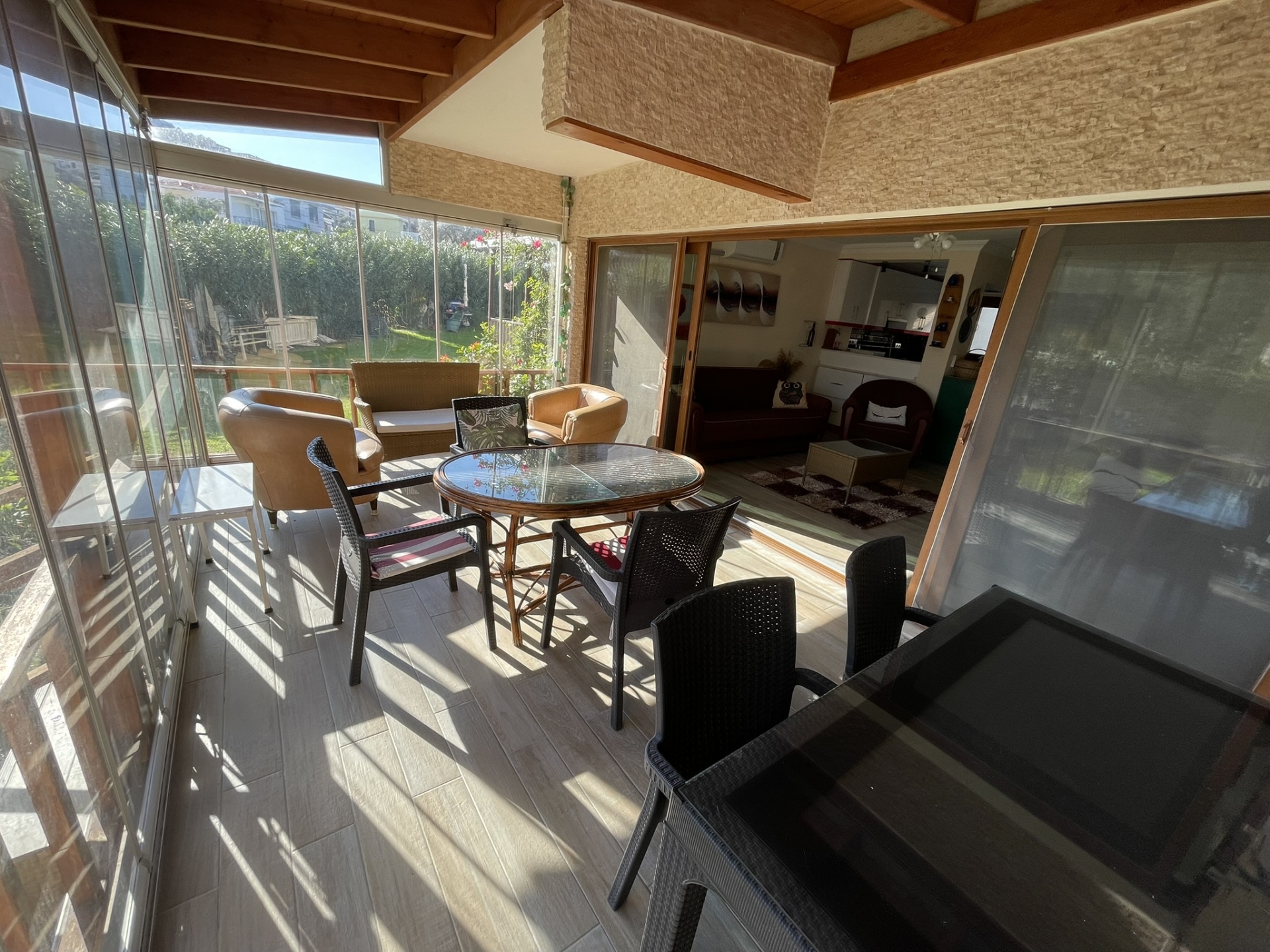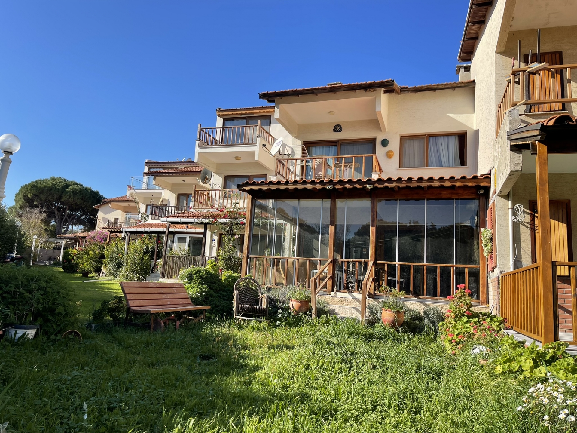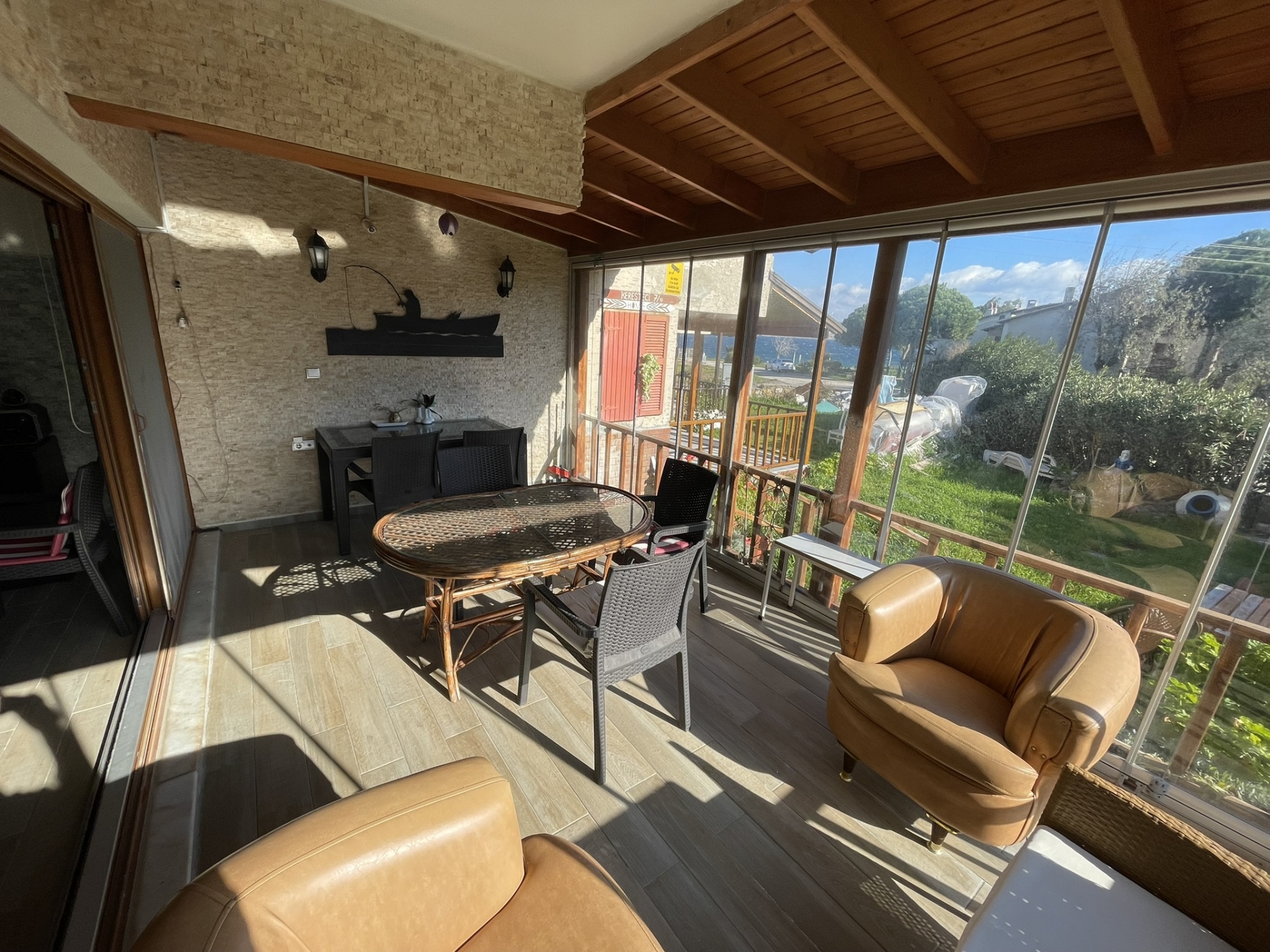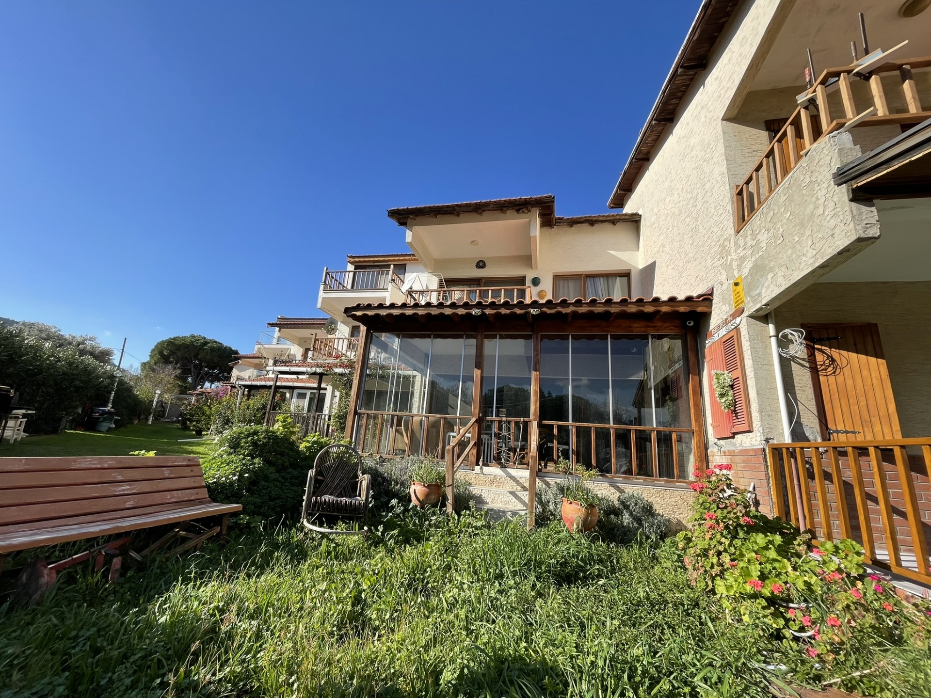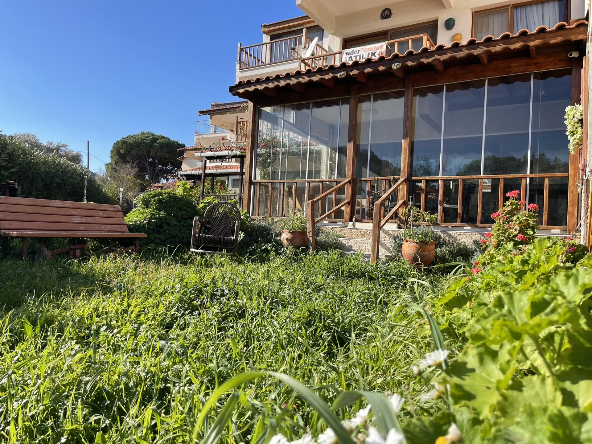 ESKİPETRE KÜLTÜR SİTESİNDE ÖN CEPHE. GENİŞ BAHÇE ALANINA SAHİP. GENİŞ KATLANIR CAM SİSTEMLİ VERANDA, DOĞALGAZ KOMBİ,AÇIK MUTFAK SALON BİR,EŞYALI SATILIK DENİZ MANZARALI SAHİLE 80 METRE MESAFEDE 3+1 TRİPLEKS