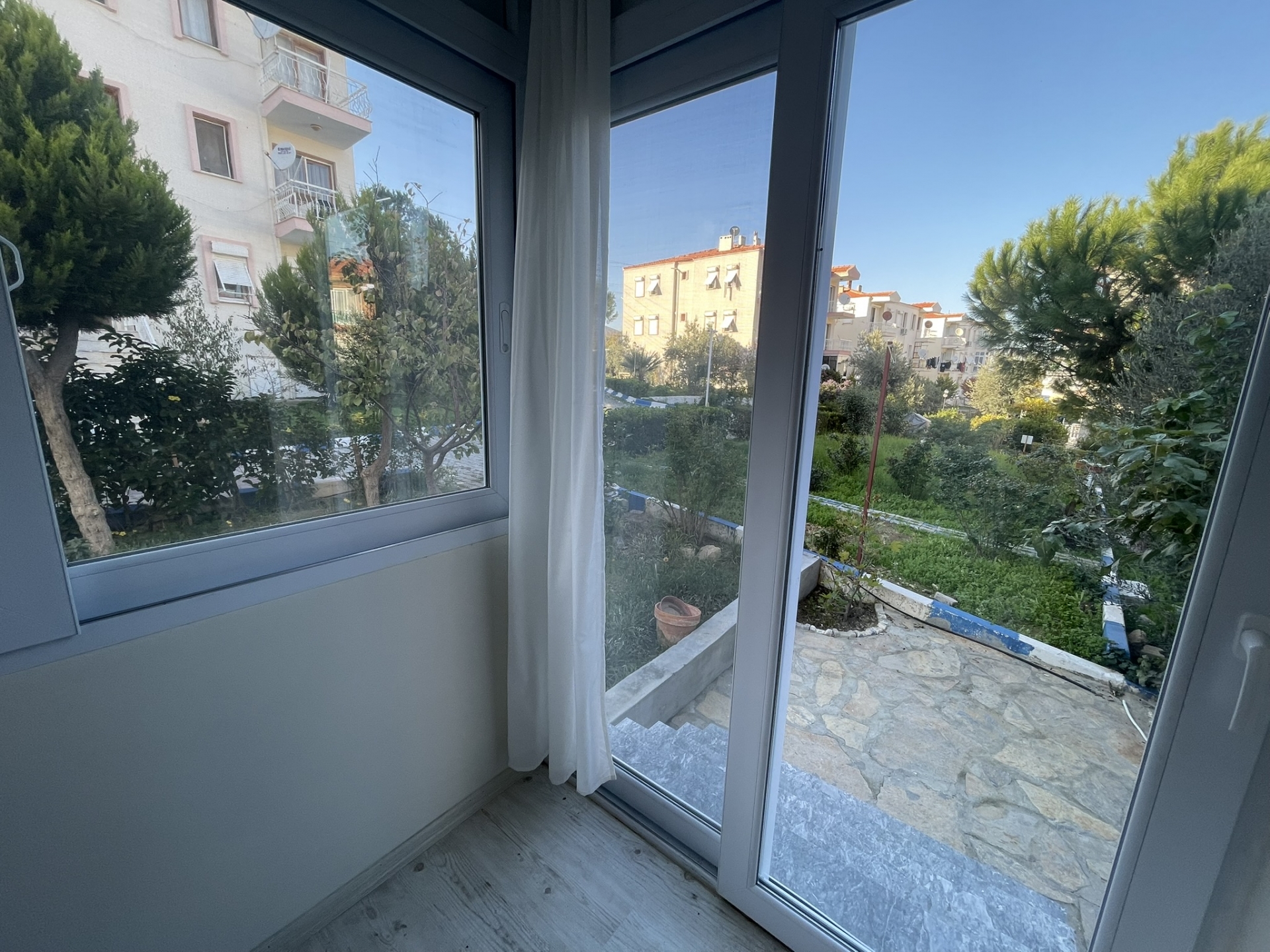 YENİ FOÇA GÖKSLE BEY SİTESİNDE ZEMİN BAHÇELİ DOĞALGAZ KOMBİLİ BAKIMLI 2+1 DAİRE