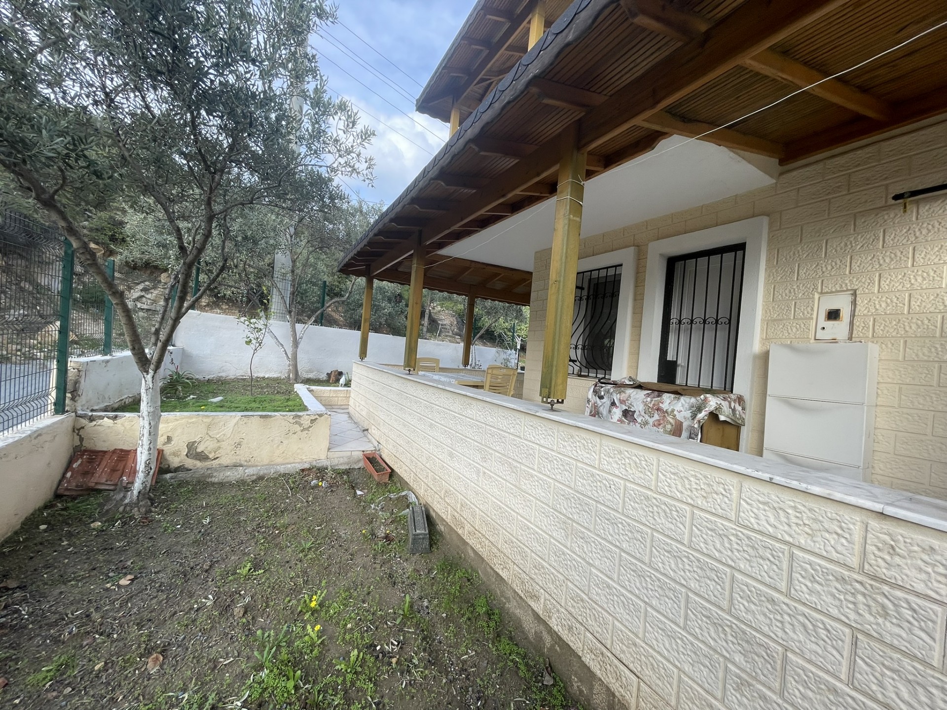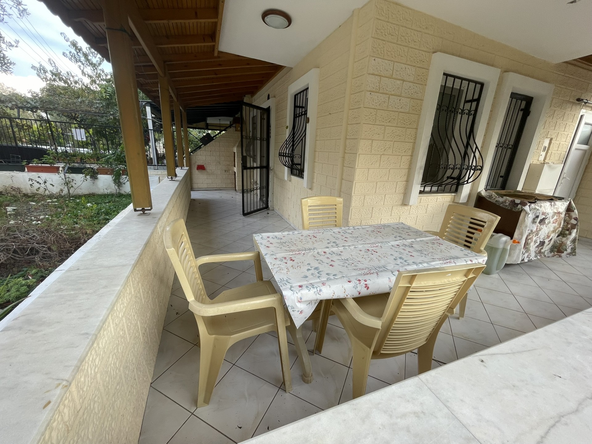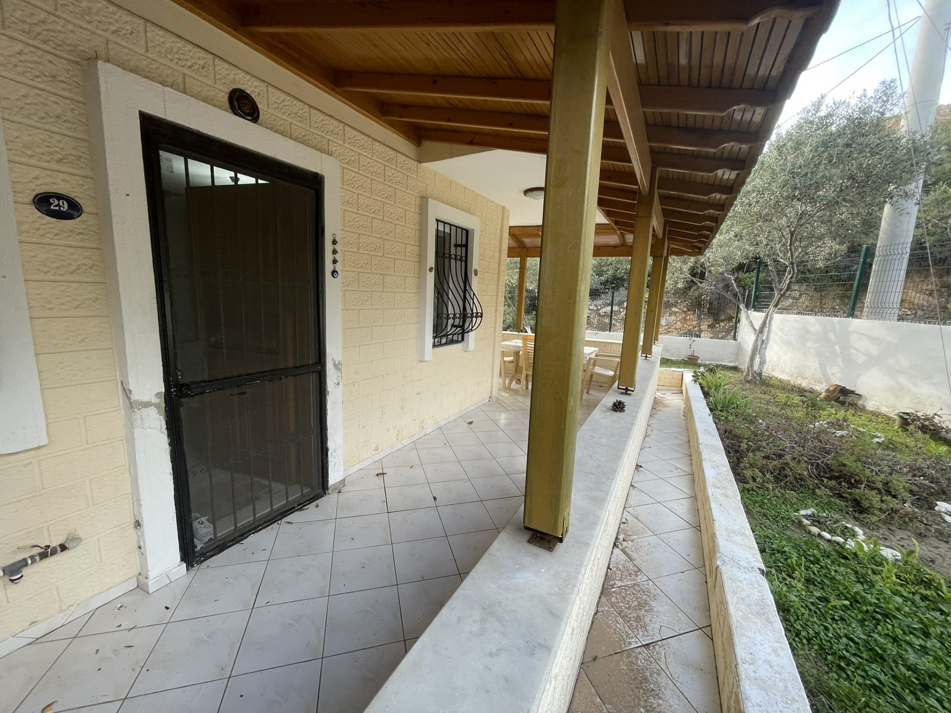 Dış köşe müstakil girişli müstakil bahçeli geniş verandalı ayrıca açık mutfak 2 yatak odası 1 wc banyo harici ek olarak çatıda açık mutfak salonu mevcut